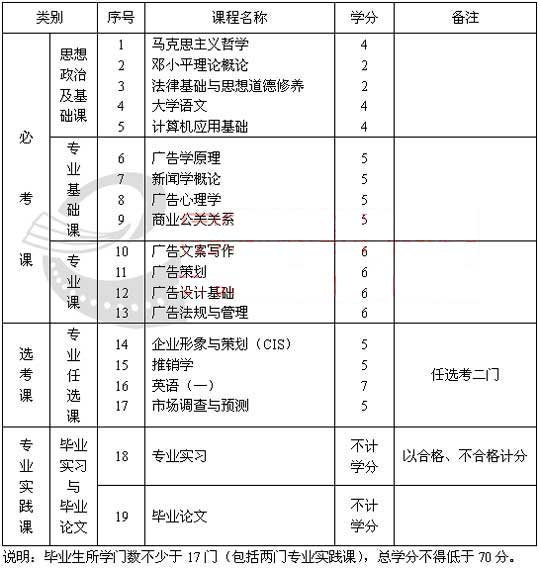廣告學(xué)專業(yè)(專科)考試計(jì)劃