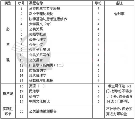 云南自學(xué)考試公共關(guān)系(專科)專業(yè)考試計劃