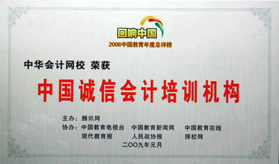 正保會(huì)計(jì)網(wǎng)校獲得“中國(guó)誠(chéng)信會(huì)計(jì)培訓(xùn)機(jī)構(gòu)”稱號(hào)