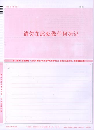 網(wǎng)上閱卷答題卡樣張2