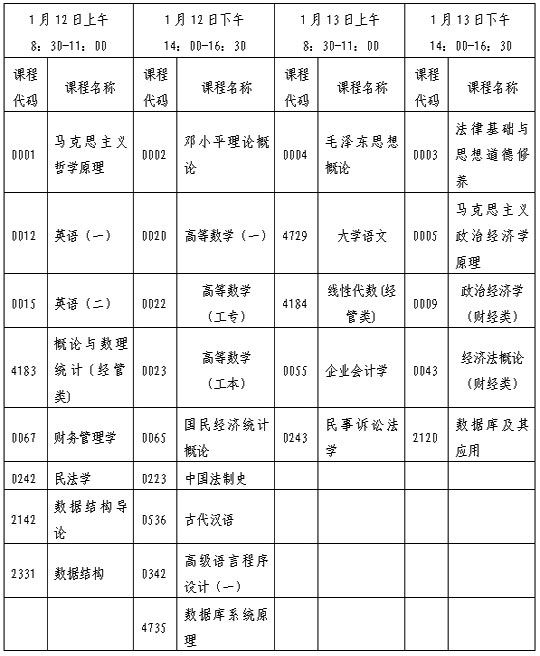六、附:2008年1月廣東省高等教育自學(xué)考試全國(guó)統(tǒng)考課程時(shí)間安排表