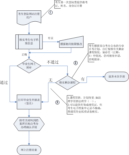 湖北08年自學考試畢業(yè)生網(wǎng)上注冊流程圖