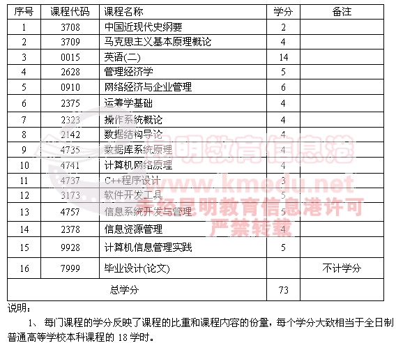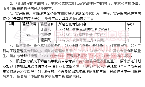 云南自考計(jì)算機(jī)信息管理專業(yè)(獨(dú)本)考試計(jì)劃