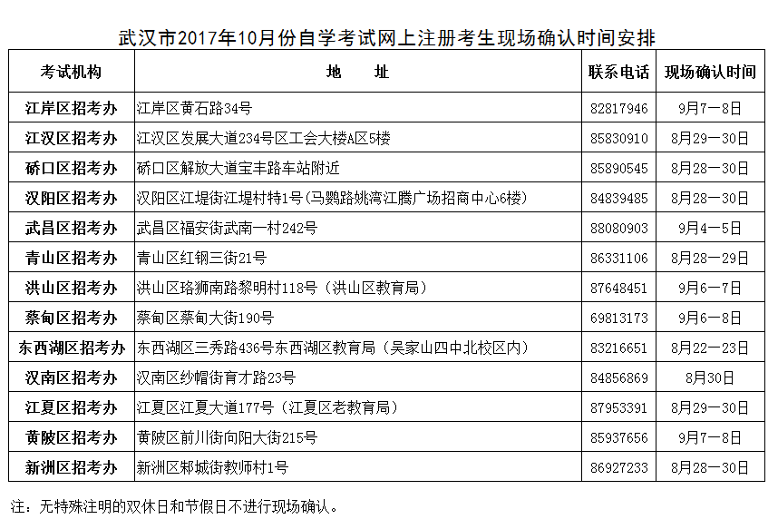 2017年10月武漢市自考網(wǎng)上注冊考生現(xiàn)場確認時間安排
