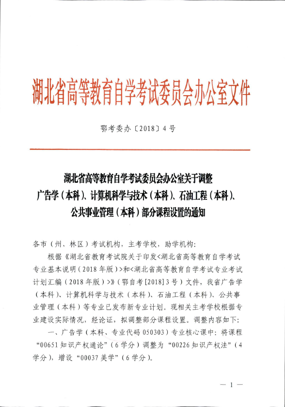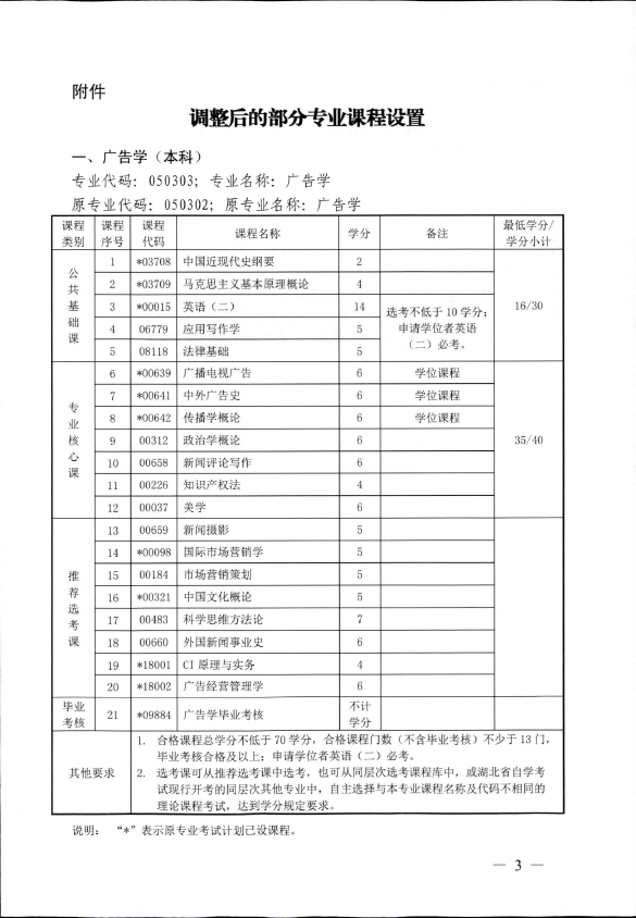 關(guān)于湖北調(diào)整廣告學(xué)等專業(yè)部分課程設(shè)置的通知