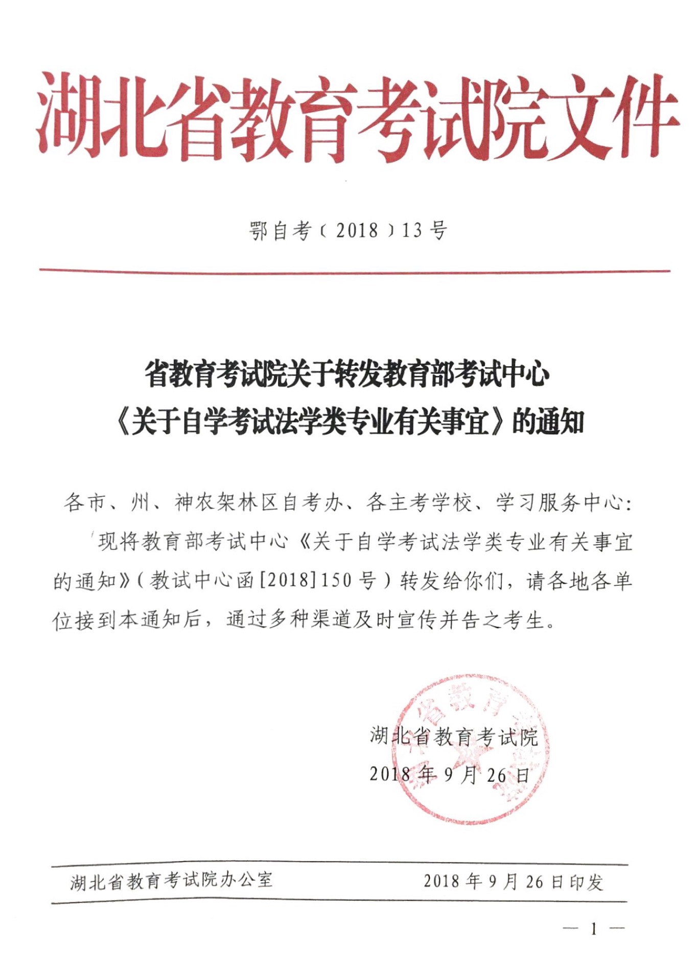 湖北關(guān)于自學(xué)考試法學(xué)類專業(yè)有關(guān)事宜的通知