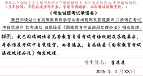 湖北省2026年4月高等教育自學(xué)考試考前溫馨提示