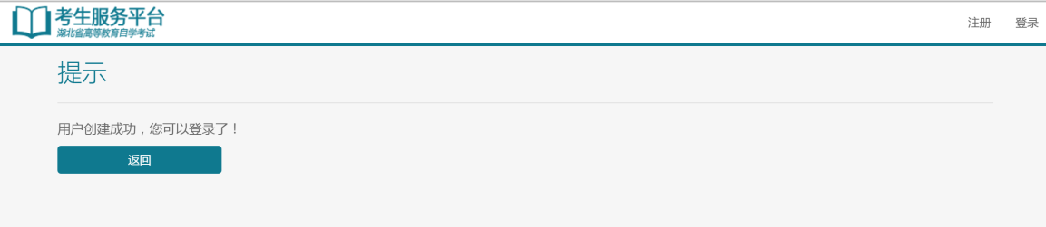 4 點(diǎn)擊“注冊”按鈕,注冊成功會彈出如下提示: