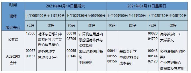 2021年4月湖南自考??茣媽I(yè)考試時間為2021年4月10日-11日,2021年4月湖南自考??茣媽I(yè)課程安排如下: