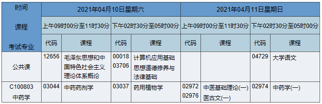 2021年4月湖南自考專科中藥學(xué)專業(yè)課程安排表