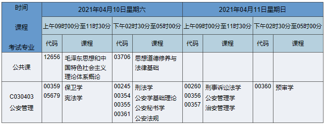 2021年4月湖南自考??乒舶踩芾韺I(yè)考試時間為2021年4月10日-11日,2021年4月湖南自考??乒舶踩芾韺I(yè)課程安排如下: