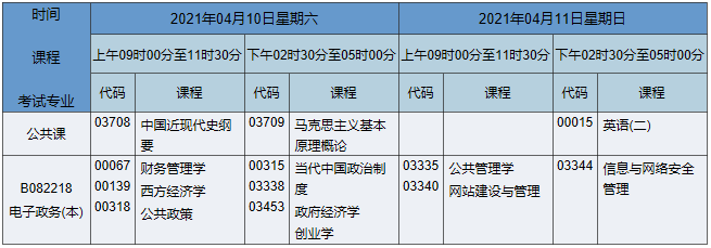 2021年4月湖南自考本科行政管理(原電子政務(wù))專業(yè)課程安排表