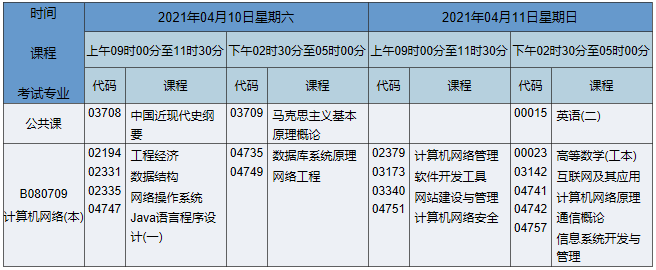 2021年4月湖南自考本科網(wǎng)絡工程專業(yè)課程安排表