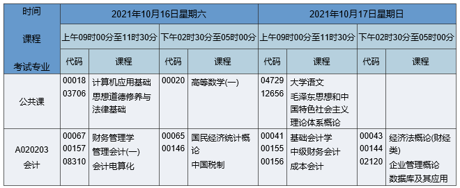 2021年10月湖南自考??茣?huì)計(jì)專業(yè)考試時(shí)間為2021年10月16日-17日,2021年10月湖南自考??茣?huì)計(jì)專業(yè)課程安排如下: