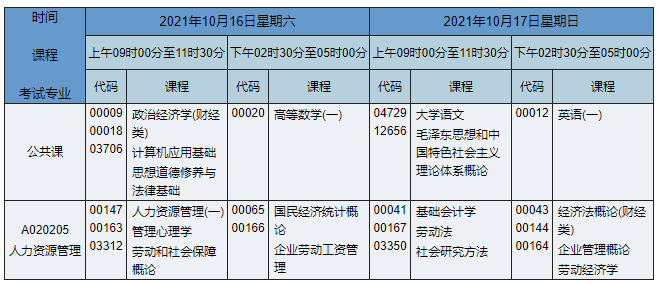 2021年10月湖南自考專科人力資源管理專業(yè)考試時(shí)間為2021年10月16日-17日,2021年10月湖南自考專科人力資源管理專業(yè)課程安排如下: