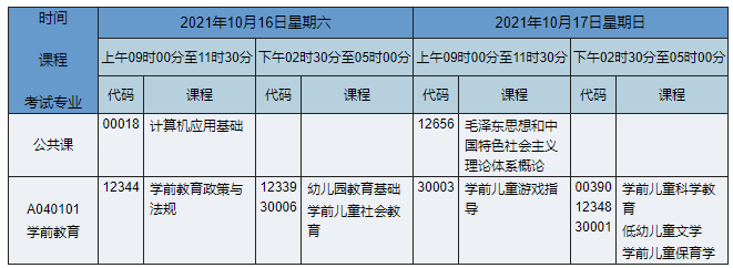 首頁 > 考試安排> 湖南考試安排 > 2021年10月湖南自考??茖W(xué)前教育專業(yè)課程安
