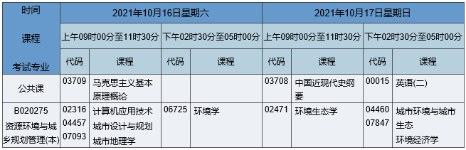 - 2021年10月湖南自考本科資源環(huán)境與城鄉(xiāng)規(guī)劃管理專業(yè)課程安排表
