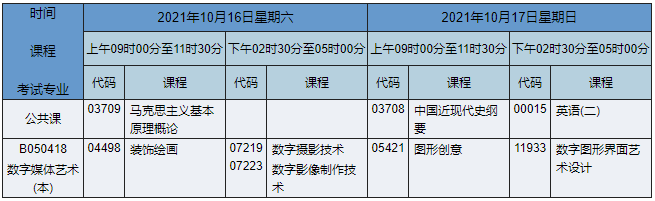 2021年10月湖南自考本科數(shù)字媒體藝術(shù)專業(yè)考試時間為2021年10月16日-17日,2021年10月湖南自考本科數(shù)字媒體藝術(shù)專業(yè)課程安排如下: