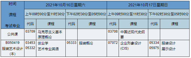 2021年10月湖南自考本科服裝與服飾設(shè)計(jì)(原服裝藝術(shù)設(shè)計(jì))專業(yè)課程安排表