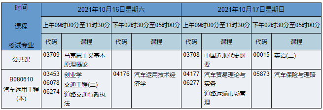 2021年10月湖南自考本科汽車服務(wù)工程(原汽車運(yùn)用工程)專業(yè)課程安排表