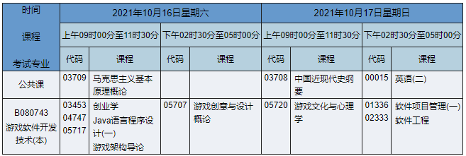 - 2021年10月湖南自考本科軟件工程(原游戲軟件開(kāi)發(fā)技術(shù))專業(yè)課程安排表