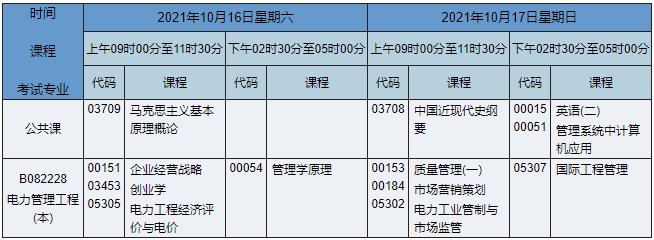 2021年10月湖南自考本科電氣工程及其自動(dòng)化(原電力管理工程)專業(yè)課程安排表