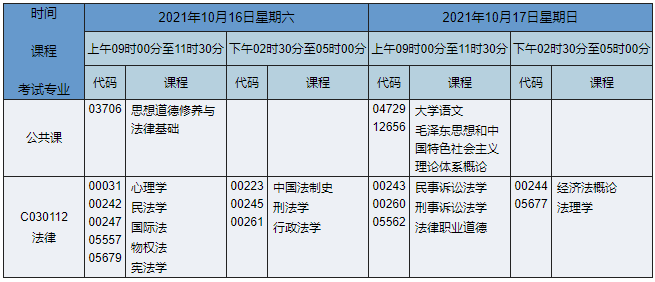 2021年10月湖南自考??品墒聞?wù)(原法律)專業(yè)課程安排表