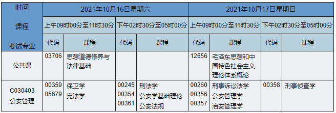 2021年10月湖南自考專科公共安全管理(原公安管理)專業(yè)課程安排表