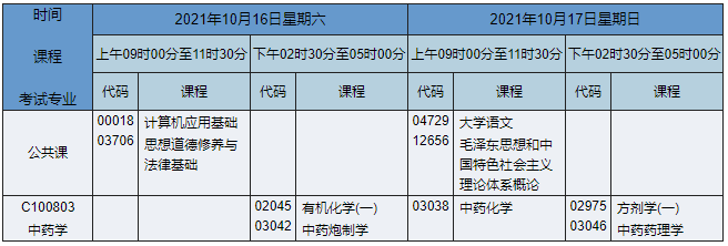 首頁 > 考試安排> 湖南考試安排 > 2021年10月湖南自考??浦兴帉W專業(yè)課程安排