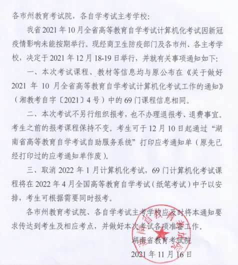 2021年10月湖南自考計算機(jī)化考試工作組織安排的通知