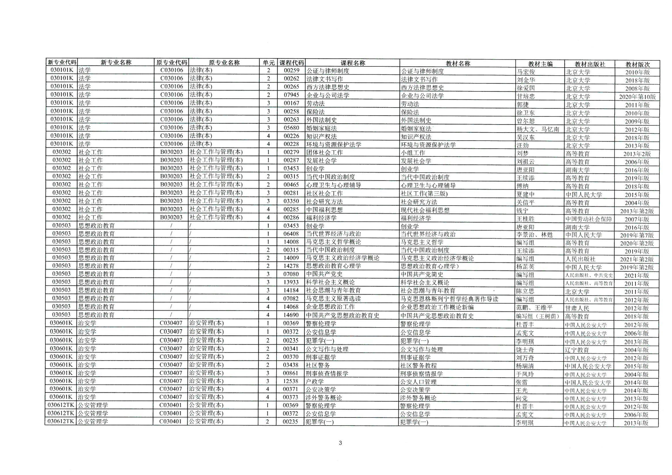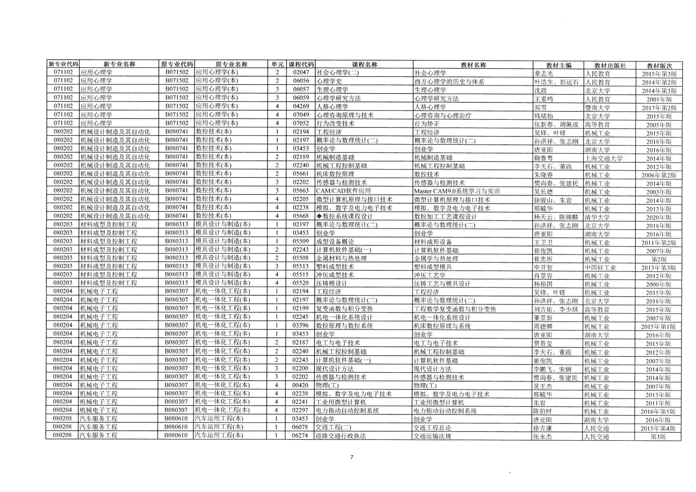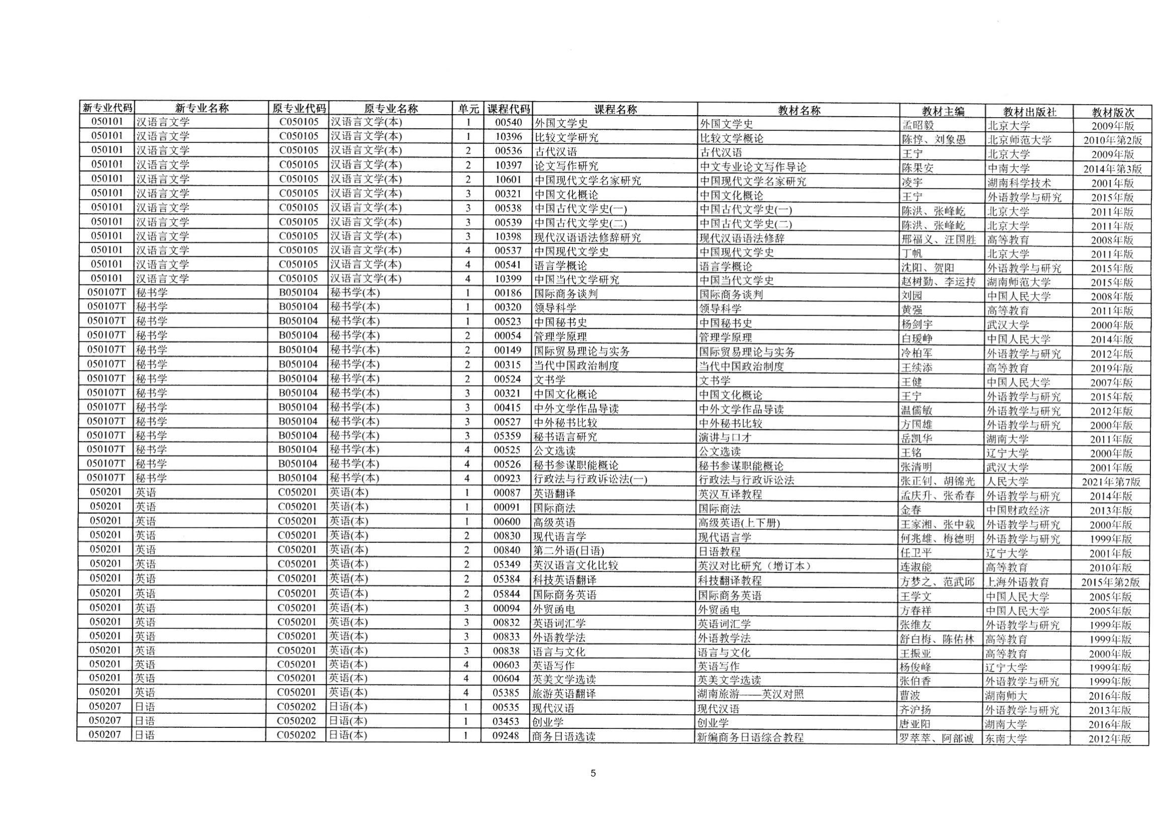 2023年10月湖南自考課程安排及教材目錄