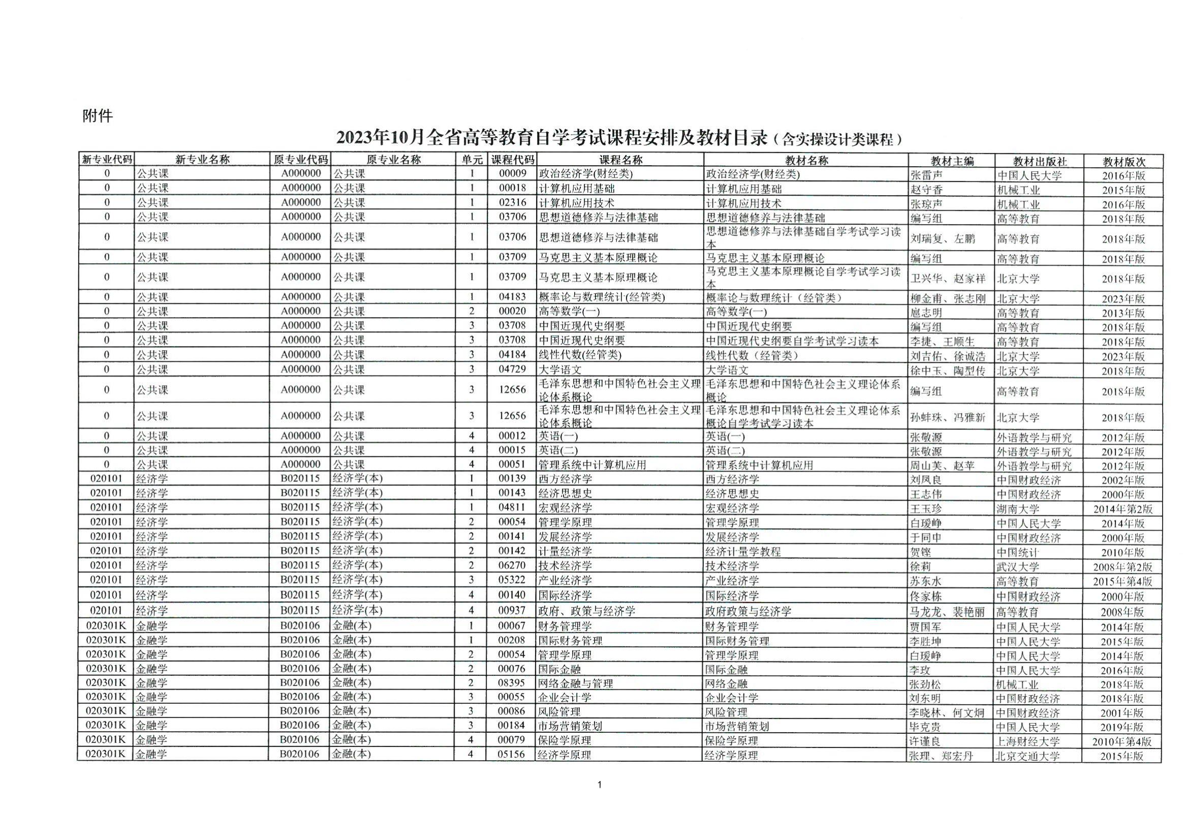 按照教育部教育考試院《關(guān)于2023年高等教育自學(xué)考試全國(guó)統(tǒng)考課程安排有關(guān)事項(xiàng)的通知》(教考院函〔2022〕90號(hào))要求,結(jié)合我省實(shí)際情況,現(xiàn)將2023年10月全省高等教育自學(xué)考試課程安排及教材目錄印發(fā)給你們,并就有關(guān)事項(xiàng)通知如下:
