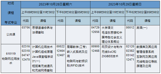 2023年10月湖南自考??莆锫?lián)網(wǎng)應(yīng)用技術(shù)專業(yè)課程安排表