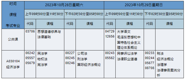 2023年10月湖南自考專科經(jīng)濟法學(xué)專業(yè)課程安排表