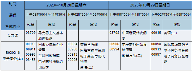 - 2023年10月湖南自考本科電子商務(wù)專業(yè)課程安排表