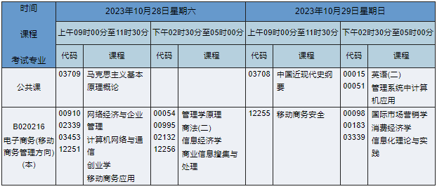 - 2023年10月湖南自考本科電子商務(wù)(移動商務(wù)管理方向)專業(yè)課程安排表
