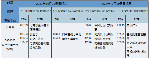 2023年10月湖南自考本科網(wǎng)絡(luò)營(yíng)銷與管理專業(yè)課程安排表