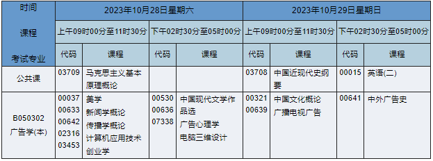 2023年10月湖南自考本科廣告學(xué)專業(yè)課程安排表