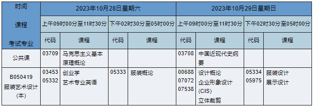 2023年10月湖南自考本科服裝藝術(shù)設(shè)計專業(yè)課程安排表