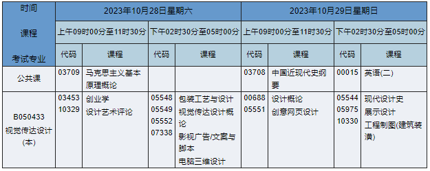 2023年10月湖南自考本科視覺傳達(dá)設(shè)計(jì)專業(yè)課程安排表