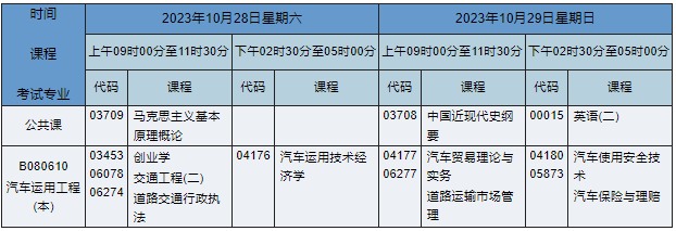2023年10月湖南自考本科汽車運用工程專業(yè)(專業(yè)代碼:B080610)課程安排如下: