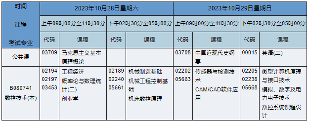 2023年10月湖南自考本科數(shù)控技術(shù)專業(yè)課程安排表