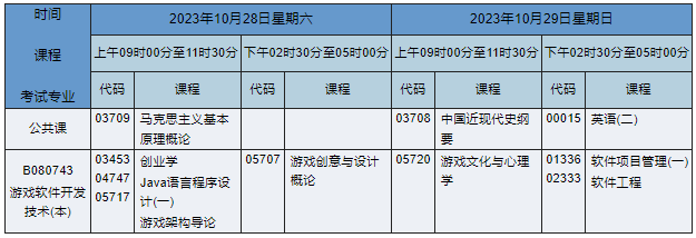 2023年10月湖南自考本科游戲軟件開(kāi)發(fā)技術(shù)專業(yè)課程安排表