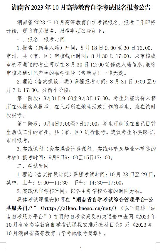 2023年10月湖南省高等教育自學(xué)考試報名報考公告