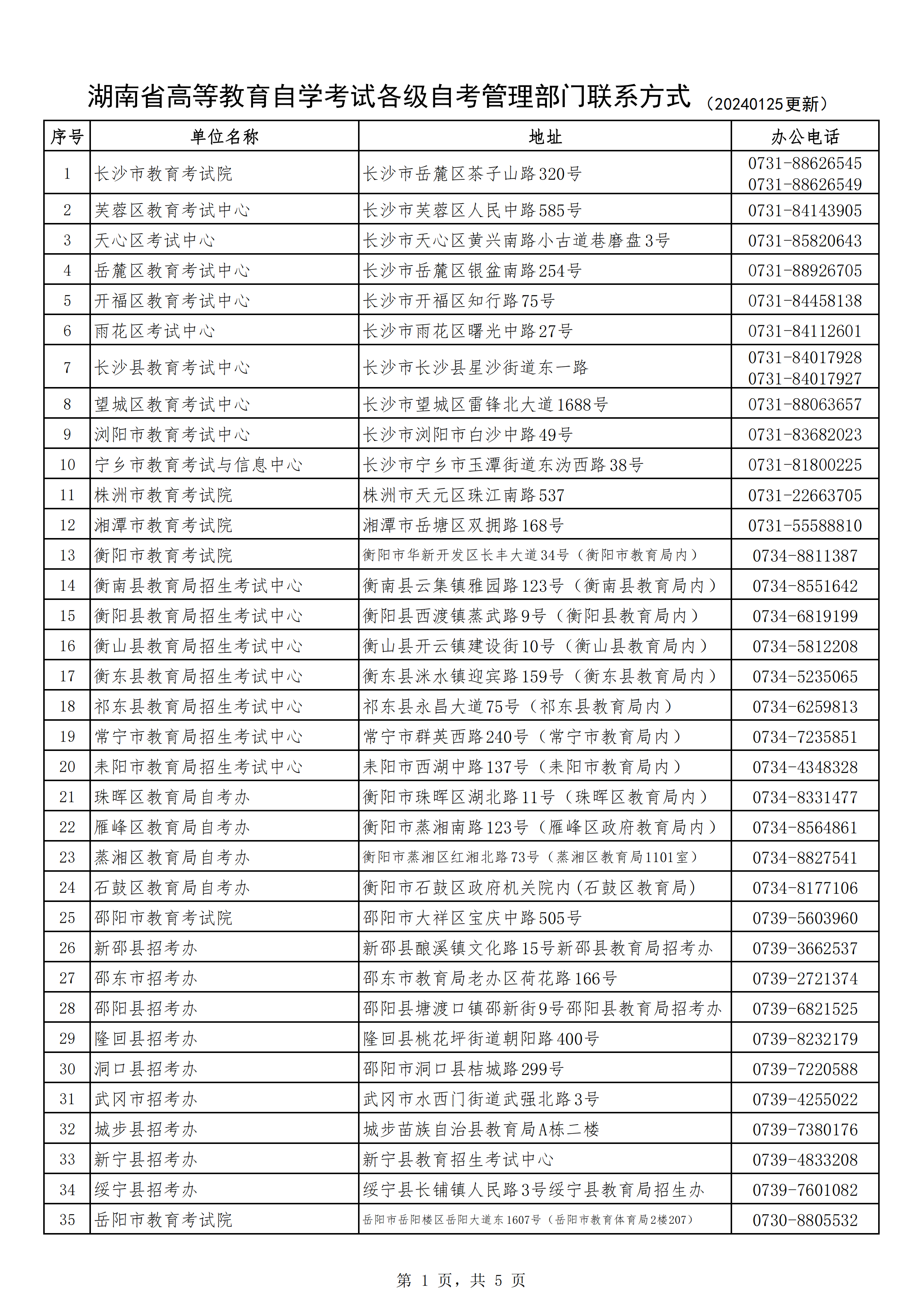 2024年湖南省自考各級自考管理部門聯(lián)系方式