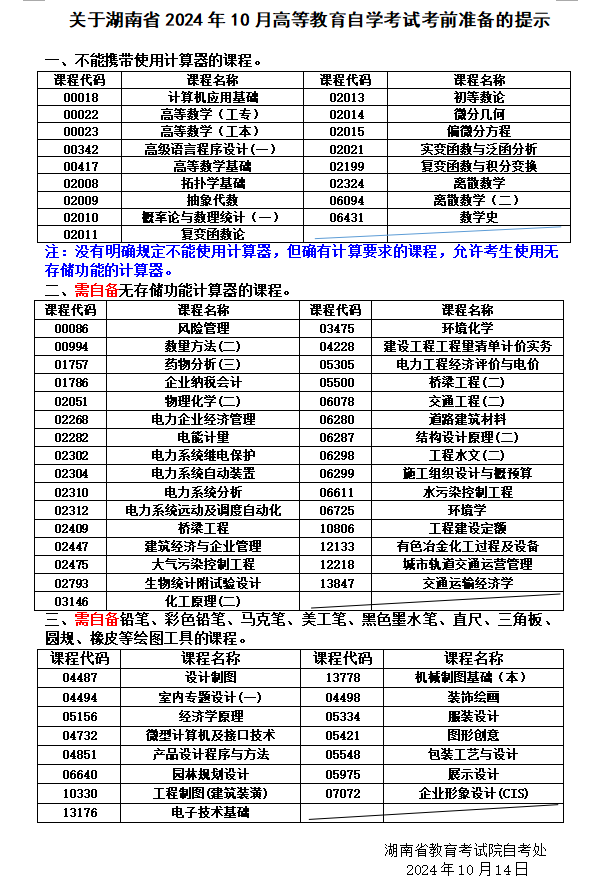 湖南省2024年10月高等教育自學(xué)考試考前準(zhǔn)備的提示