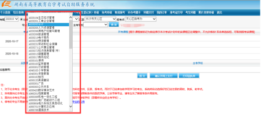 4.根據(jù)報考計劃,選擇要報考課程并提交,(特別注意,助學(xué)班考生請不要在該系統(tǒng)報考實踐課和論文,如報考實踐論文產(chǎn)生額外報考費的自行負責(zé)。如需報考論文和實踐的同學(xué)請聯(lián)系朱老師:0731-88145904)