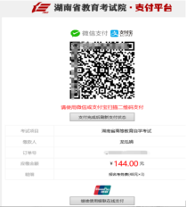 3、報考費網(wǎng)上繳費須在報考當日的21:00前完成,逾期視為放棄當日的報考,需第二天重新報考。考生須認真核對考區(qū)和報考課程是否正確后再繳費,繳費完成后所有報考信息不予修改,報考費不予退還。考生報考成功的標志是所報考課程的繳費狀態(tài)為“已繳費”。