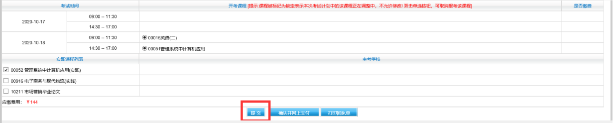 第五步:對(duì)報(bào)考的課程進(jìn)行網(wǎng)上支付