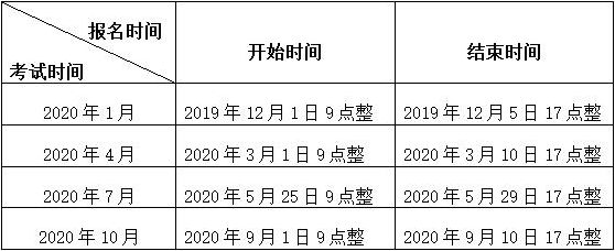 從2020年開始,我省自學(xué)考試網(wǎng)上報(bào)名全年分四次進(jìn)行。2020年1、4、7、10月份四次考試網(wǎng)上報(bào)名時(shí)間安排如下表: